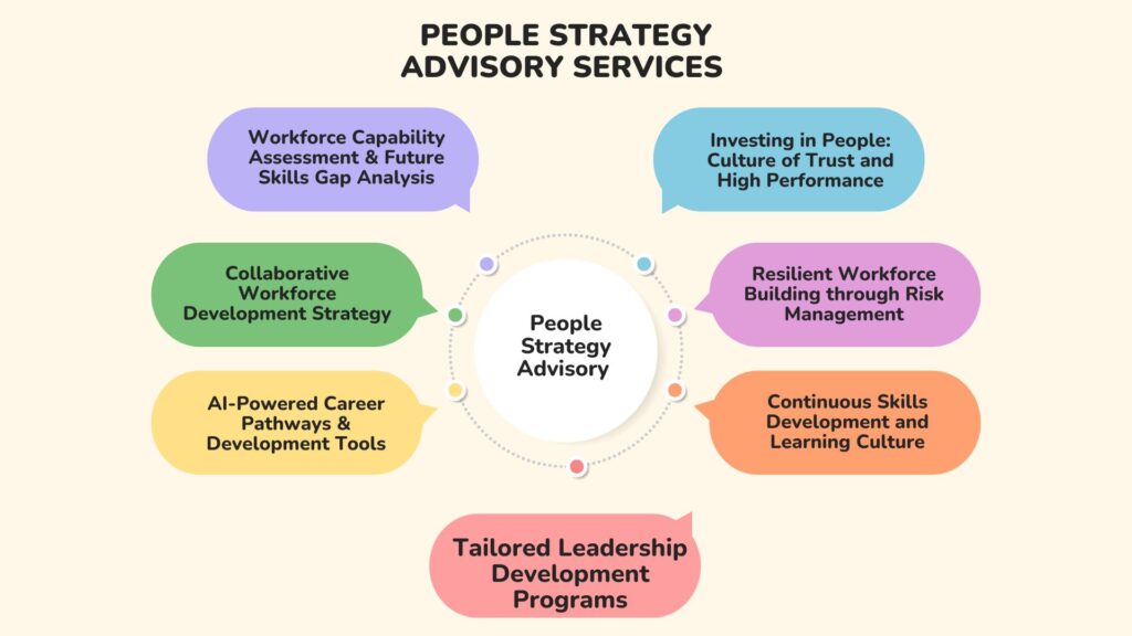 At SSTC, we provide comprehensive People Strategy Advisory Services designed to help organizations build a future-ready workforce that is adaptable, skilled, and resilient in the face of rapid technological and industry changes. Our services focus on workforce capability enhancement, leadership development, AI-driven career guidance, continuous learning, and fostering collaboration between employers and employees. By investing in your people, we ensure they thrive in an evolving work environment, helping your organization achieve sustained growth and success.
